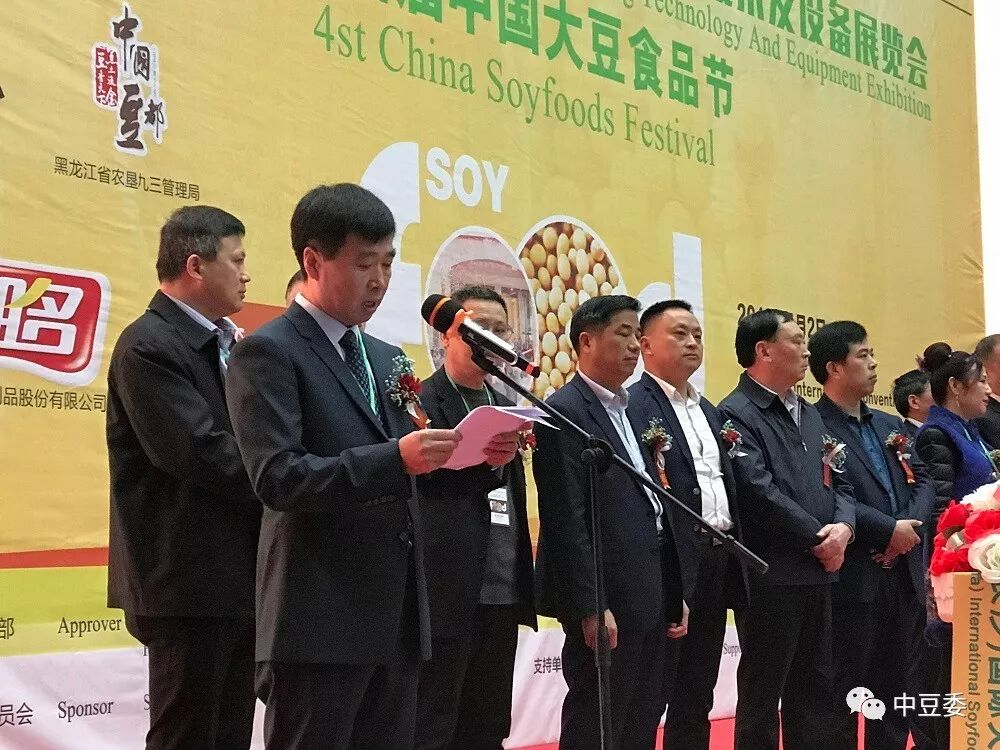 董永忠致辞说,多年来,中国国际大豆食品加工技术及设备展览会,作为大豆食品行业集中展示和交流的重要舞台,在推动我国大豆食品产业升级,树立企业品牌形象,扩大产品销售渠道,促进行业技术进步等方面发挥了重要作用,九三管理局积极协办中豆委举办了一系列展会活动,为维护大豆食品安全做出了积极贡献。同时,作为中国大豆食品专用原料的生产基地,将继续发挥良好的生态环境、大农业规模化种植的优势,通过大豆专品种种植、专品种收获、专品种贮运,为企业提供长期稳定的专品质大豆原料。