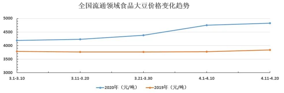 ▲图1 2020年3、4月份国家统计局流通领域食品大豆价格变化趋势图