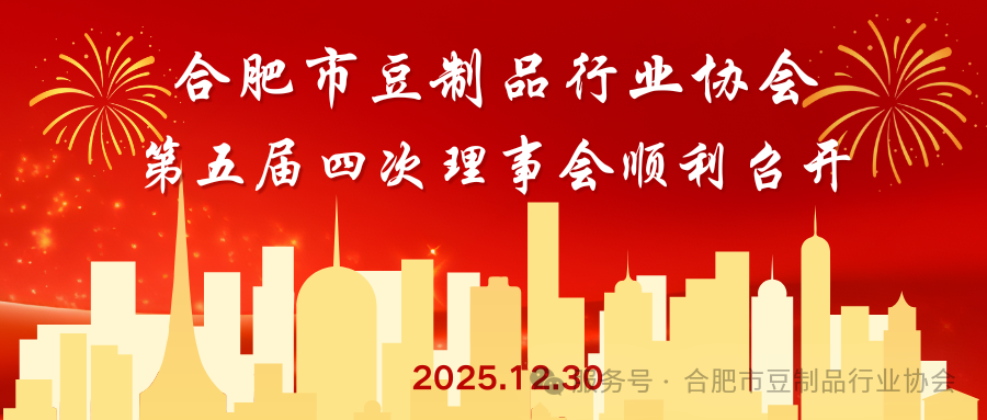 2025 年 12 月 30 日,冬日暖阳轻洒合肥大地,为这座活力之都增添了几分温馨祥和。合肥市庐阳区天河路安徽大富食品有限公司会议室里,合肥市豆制品行业协会五届四次理事会隆重召开。二十家理事单位代表满怀热忱,齐聚一堂,共襄这一年度盛会,回顾发展历程,展望行业未来。